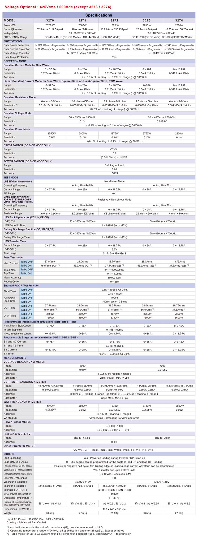 Voltage Optional : 425Vrms / 600Vdc ( except 3273 / 3274)