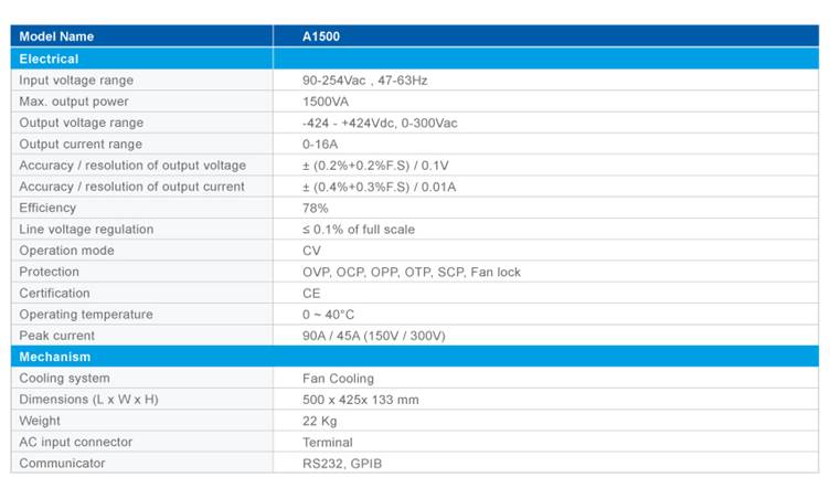 synchronization built in. Maximum 1500VA output power and programmable 30¡V1KHz output