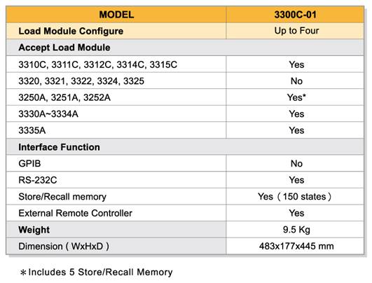 3300C is a 4 Channels 1200W Mainframe which accepts up to
