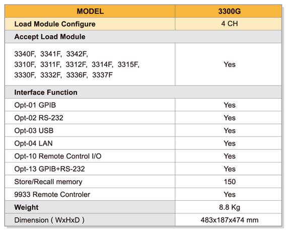 3305G is a 2 channels 600W Mainframe which accepts up to