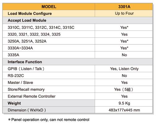 3305G is a 2 channels 600W Mainframe which accepts up to