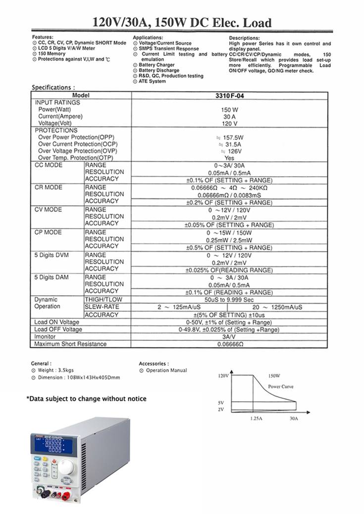 CC/CR/CV/CP/Dynamic modes, plug in 3300F with 150 sets Store/Recall memory