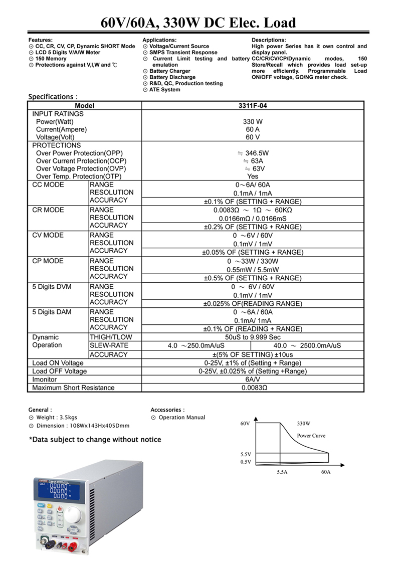 CC/CR/CV/CP/Dynamic modes, plug in 3300F with 150 sets Store/Recall memory
