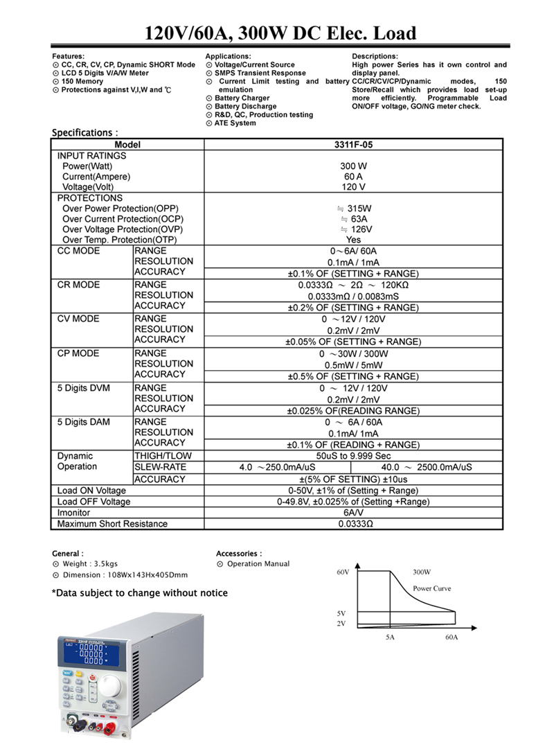 CC/CR/CV/CP/Dynamic modes, plug in 3300F with 150 sets Store/Recall memory