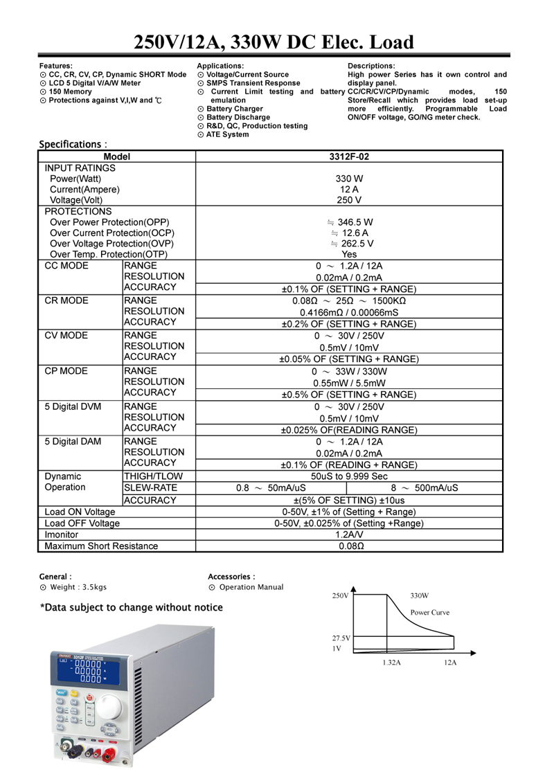 CC/CR/CV/CP/Dynamic modes, plug in 3300F with 150 sets Store/Recall memory
