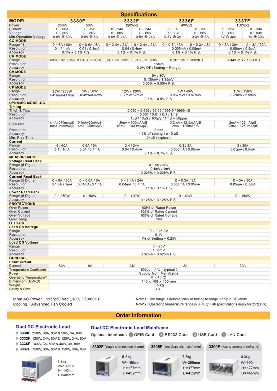 in 3302F¡esingle channel mainframe¡f¡B3305F¡etwo channels mainframe¡for 3300F¡efour channels mainframe¡fand the mainframe with 150 sets Store / Recall memory.
