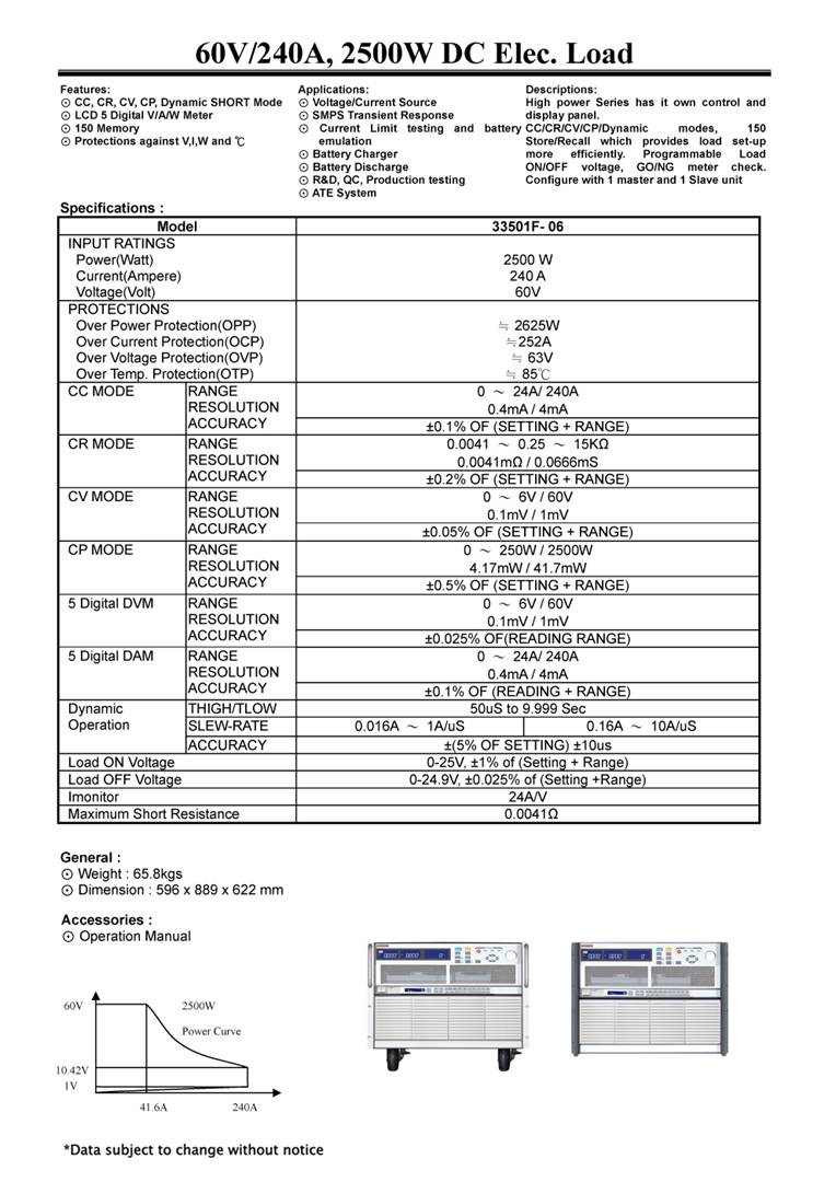 CR / CV / CP / Dynamic modes, 150 sets Store/Recall memory which provides load