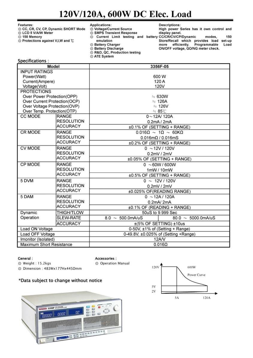 3350F has its own control and display panel, CC/CR/CV/CP/Dynamic