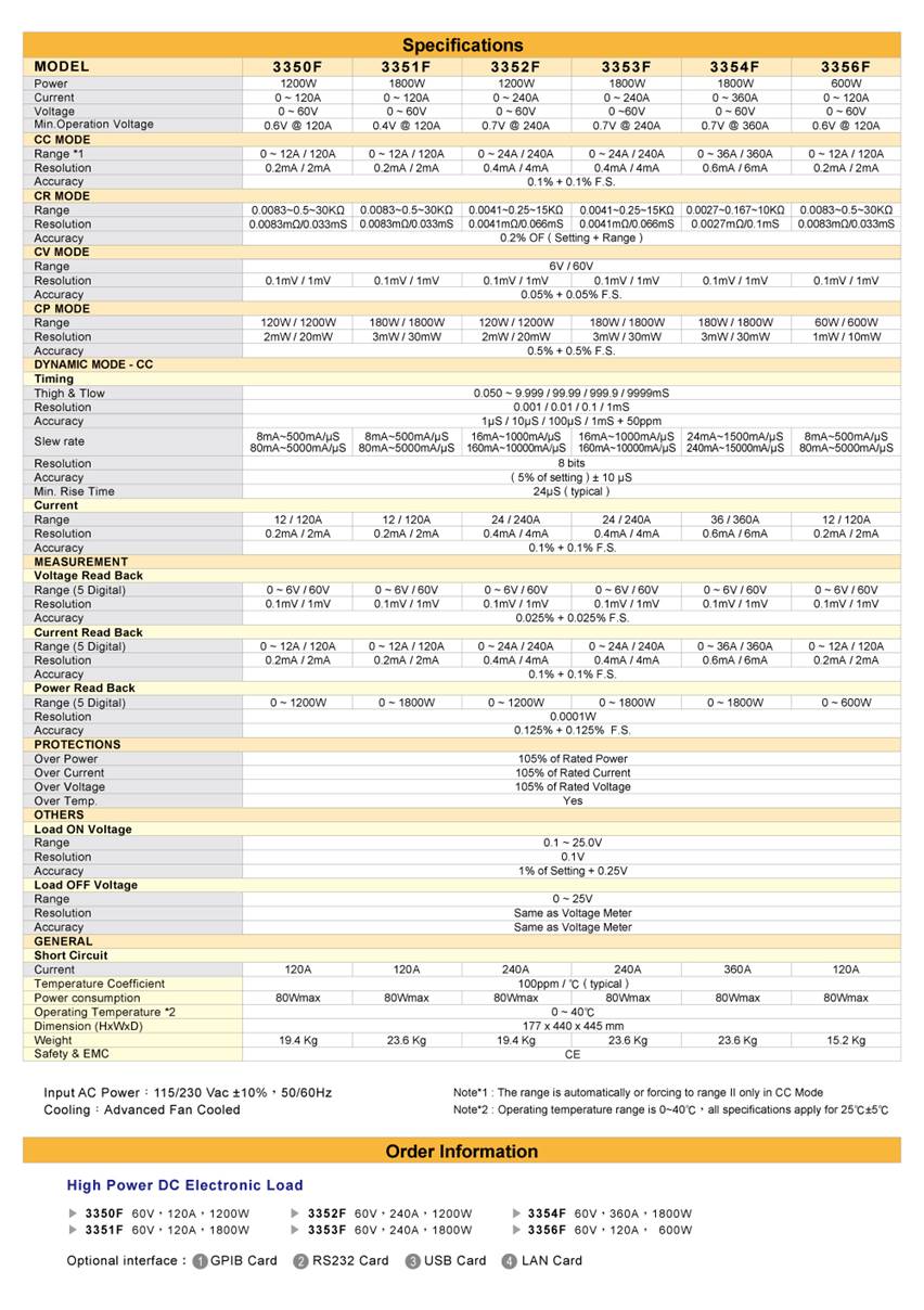 3350F has its own control and display panel, CC/CR/CV/CP/Dynamic