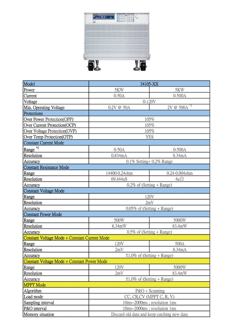 Support MPPT CC¡BCR¡BCV test function for solar panel