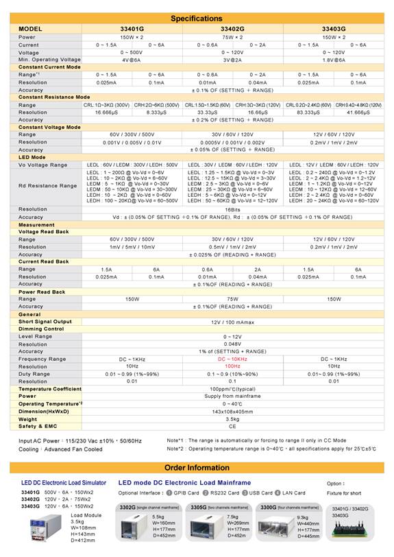 Must be configured in 3302G〔single channel mainframe〕、3305G〔two channels mainframe〕or 3300G〔four channels mainframe〕and the mainframe