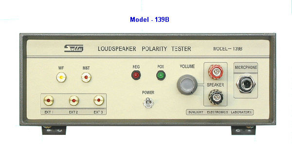 1. Pulse Testing Method. 2. Polarity : a. Pos. polarity :Green LED indicator with beep sound. b. Neg. polarity : Red LED indicator with no sound. 3. Sensor : ECM 4. Five selecting switches : WF : suitable for the woofer. M & T : suitable for the midrange, tweeter & headphone. Ext.1 ~ Ext.3 : For connecting instruments. 5. Dim. : 28 ( L ) × 9 ( H ) × 21 ( D ) cm. 6. Net Weight : 2.5 KGS.